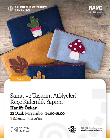 Keçe Kalemlik Yapımı AtölyesiDeneyim Merkezi'nde üç yılda binlerce öğrenciyi ağırladık; şimdi ise Rami Kütüphanesi iş birliğiyle bu deneyimi sizlerle buluşturuyoruz.