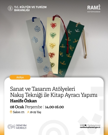 Nakış Tekniği ile Kitap Ayracı Yapımı AtölyesiDeneyim Merkezi'nde üç yılda binlerce öğrenciyi ağırladık; şimdi ise Rami Kütüphanesi iş birliğiyle bu deneyimi sizlerle buluşturuyoruz.