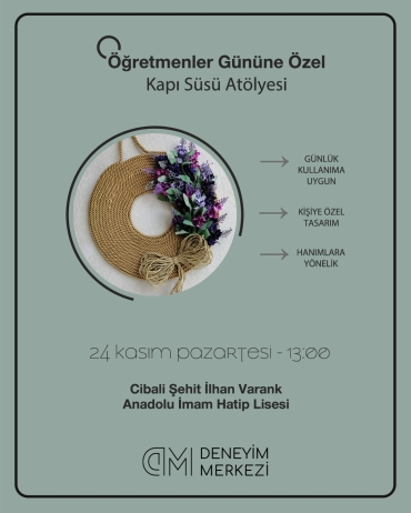 Öğretmenler Gününe Özel Kapı Süsü AtölyesiDeneyim Merkezi Güz Programı kapsamında Öğretmenler Gününe Özel Kapı Süsü Atölyesi yapıyoruz.