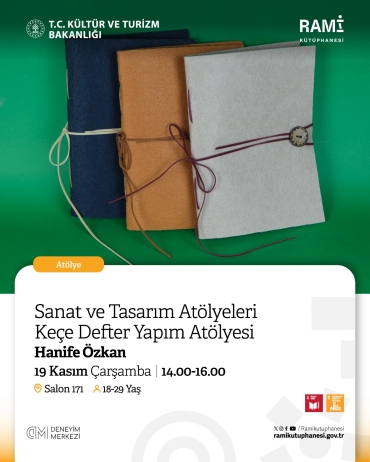 Keçe Defter Yapımı AtölyesiDeneyim Merkezi'nde üç yılda binlerce öğrenciyi ağırladık; şimdi ise Rami Kütüphanesi iş birliğiyle bu deneyimi sizlerle buluşturuyoruz.