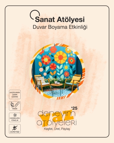 Sanat Atölyesi; Duvar Boyama EtkinliğiDeneyim Merkezi Açık Hava Atölyeleri kapsamında "Sanat Atölyesi; Duvar Boyama Etkinliği" yapıyoruz. Bu yaz, şehirde sıradanlıktan uzaklaşmak ve açık havada birlikte üretmek isteyen üniversite öğrencileri için dopdolu bir program sizlerle!